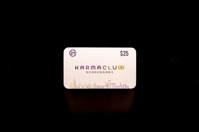 TERMS: This card has no value until presented at register at time of purchase. This card is non-transferable and cannot be redeemed for cash. Cardholder must be 21 years of age or older to use this card. Karma Club is not responsible for lost, stolen, or damaged cards. Minimum purchase of $25 (pre-tax) required. Card value cannot be split among multiple transactions and must be used within one purchase. This card has no expiration date. This card is not valid for tips.